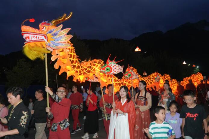 正在天堂寨镇,“化鱼成龙”夜逛将非遗舞龙、保守鱼灯取现代光影连系,营制出如梦似幻的“山川剧场”。旅客可手提鱼灯插手巡逛步队,亦可正在祈福区留下心愿。一场本来静态的抚玩,变成了可走近、可触摸的文化路程。