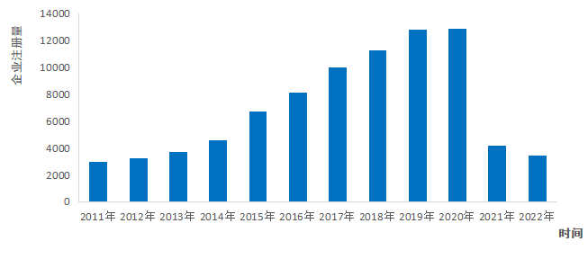 图2-3 2013-2022中国预制菜相关企业注册量 (图表数据来自迈点研究院《2022年中国预制菜财产成长演讲》和艾媒征询《2022年中国预制菜财产成长》)?。
